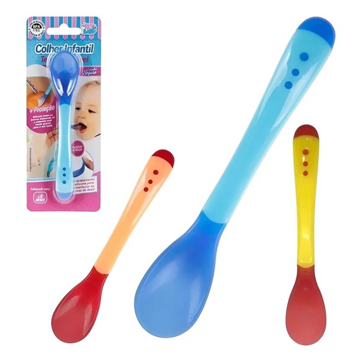 Colher Infantil Termo Sensível Proteção Silicone Bebe Azul