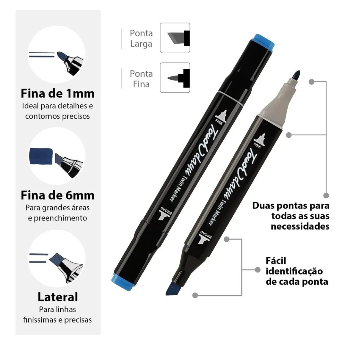 - Duas pontas: fina e grossa